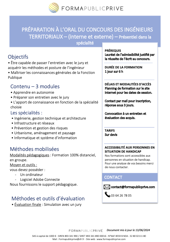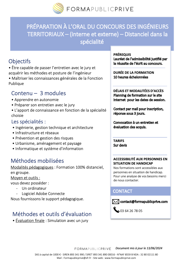 Les Programmes des Formations Préparation au Concours Ingénieur Territorial
